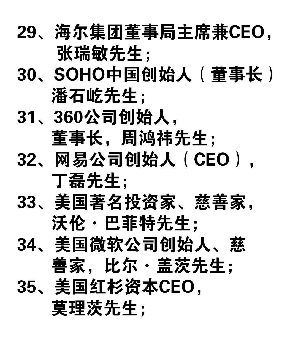 29、海尔集团董事局主席兼CEO,张瑞敏先生;